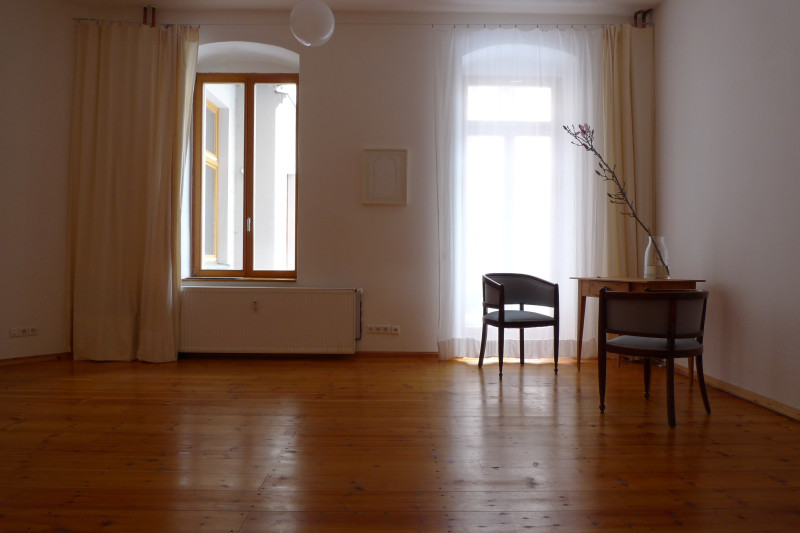 Verpflegung ist problemlos in den unzähligen Cafes und Restaurants im Kiez möglich. Equipment für Teeküche ist vorhanden (Glaskaraffen für Wasser, Gläser, Teekannen) und Behältnisse für kleine Snacks.Adresse: